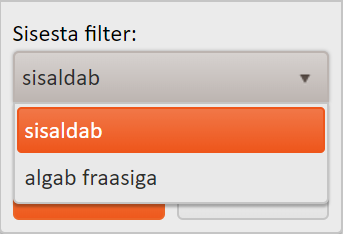 Iga filtri siseselt on võimalus veel omakorda valikut teha, kas filtreerida selle põhjal, et väli sisaldaks otsingukriteeriumit, või selle põhjal, et väli algaks antud fraasiga.