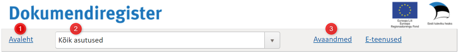- Asutuse valimine – siit saab valida allasutusi, misjärel kuvatakse lehel ainult antud allasutuse dokumendiregistrit.